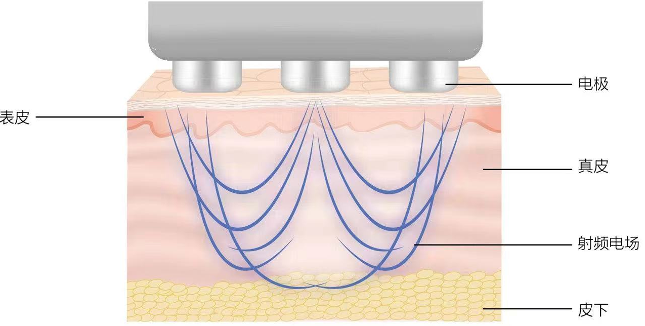 射频美容仪(也称射频治疗仪或射频皮肤治疗仪)是指利用特定频率的射频电流(通常为200k-5MHz左右)或电场(通常为13.56或40.68MHz)等电能作用于人体组织产生热效应,以实现治疗皮肤松弛、减轻皮肤皱纹、收缩毛孔、紧致/提升皮肤组织,或者治疗痤疮、瘢痕,或者减少脂肪(脂肪软化或分解)等作用的产品。