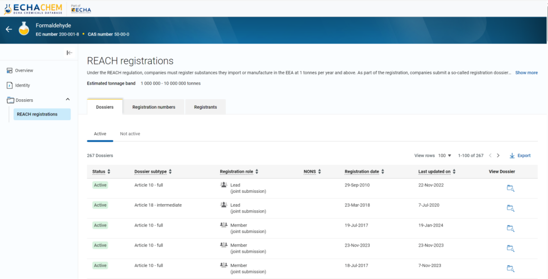 ECHA现有的化学品信息平台于2016年推出,之后迅速发展,目前包含超过360,000种化学品的信息,是全球最有分量的化学品数据库之一。而为更好地应对日益增长的数据多样性和庞大数量,ECHA在2022年就宣布将创建一个新的系统来发布数据,利用新技术改进现有系统的不足。