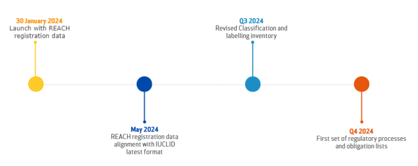 值得注意的是,新系统暂时不会披露比目前更多的信息,保密程度跟之前保持一致,只是展示方式发生变化而已。在未来几年中,ECHA还将逐步将其他数据从旧系统转移到ECHA CHEM(2024年上线计划见下图)。