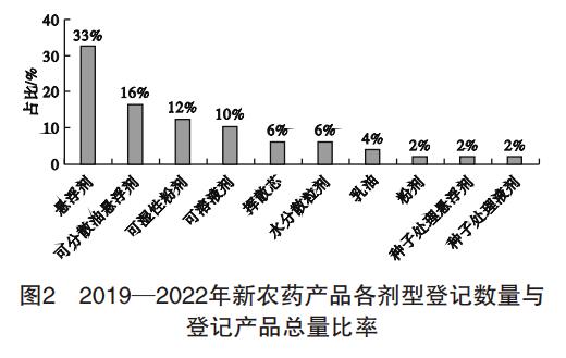 신농약제품은 모두 10종의 농약제형과 관련된다 (그림2 참조).이 중 부유제, 분산유 부유제, 가용액제 등 환경친화적 제형 제품이 차지하는 비중은 각각 33%, 16%, 10%, 가습성 분제, 유유와 분제 등 전통적인 제형 제품이 차지하는 비중은 각각 12%, 4%, 2%이다.환경 위험을 효과적으로 줄일 수 있습니다.