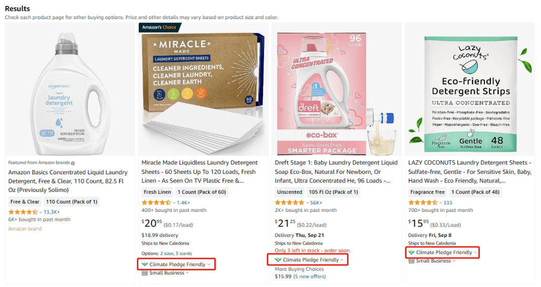 通过亚马逊官网可以发现,同类产品从销量来看,即使“气候友好承诺”产品价格略微高于普通产品,消费者仍然愿意选择更环保和可持续的产品。可持续和环保观念深入人心。